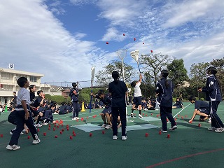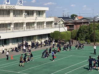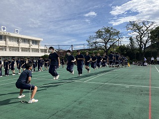 いよいよ週末の体育祭に向けて、学年ごとのリハーサルが行われています。部門の役員や入退場も含めて、一生懸命おこなっています。