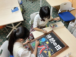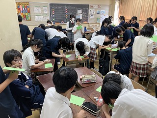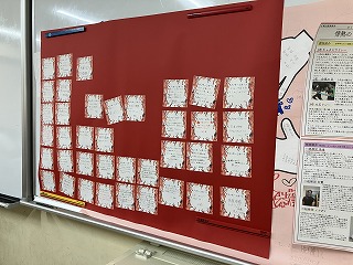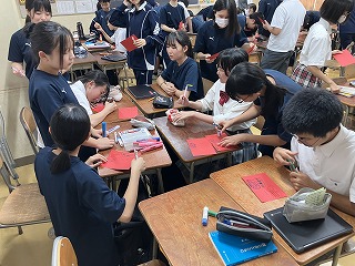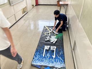 部門での打ち合わせ、道具の準備も着々と進めています。LHRでは当日開会式で使う各自の思いを書いた紙を大きな紙にはっていったり、当日使う応援グッズにお互いに寄せ書きをしあったりしました。お昼にはグラウンドで希望者で校歌を歌う活動を行っていました。