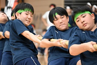 体育祭2年生種目は「綱引き」と「台風の目」です。よく知っている競技ですが、クラスで準備・練習し、とても迫力がありました。