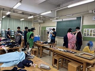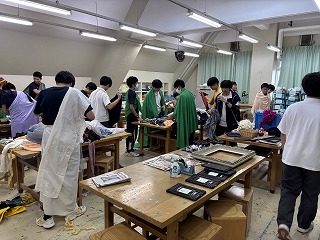 多くの生徒は、絵画の人物の特徴を深く観察し、その人物に扮装します。それをクラブの道具などの自身の現在の活動と結びつけ、現代に蘇る新たな物語を創作しました。表現を豊かにするため、額縁を用いて世界観を一変させたり、家にあるハロウィングッズなどの小道具を活用して、その人物の生涯を活かした物語を表現したりといった工夫が見られました。