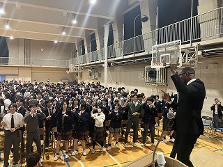 駐日ジャマイカ大使館のアレクサンダー・ディクソン一等書記官兼領事が来校し、中学生全員を対象にグローバルセミナーを開催しました。クイズやジャマイカのレゲエダンスも体験し、大変有意義なセミナーとなりました。